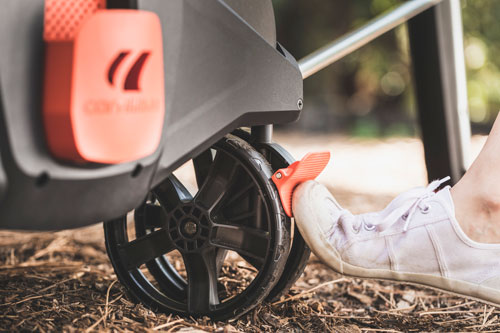 Velika dvojna kolesa na mizah Cornilleau ponujajo številne prednosti. Z lahkoto premagajo ovire, gladko potujejo po vseh vrstah terena in so izjemno okretni, enostavni za manevriranje in stabilni v nekaterih zapletenih situacijah, kot je zavijanje okrog tesnega kota, da dosežete idealno mesto za postavitev vaše mize.
